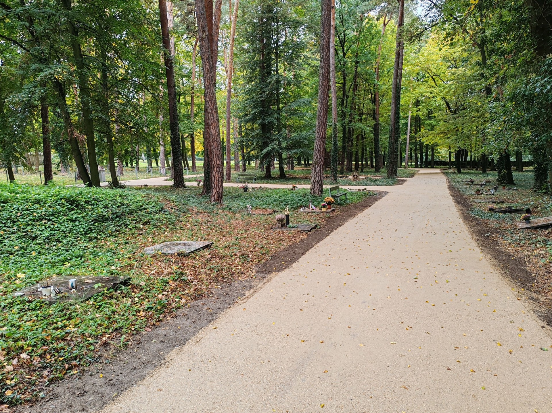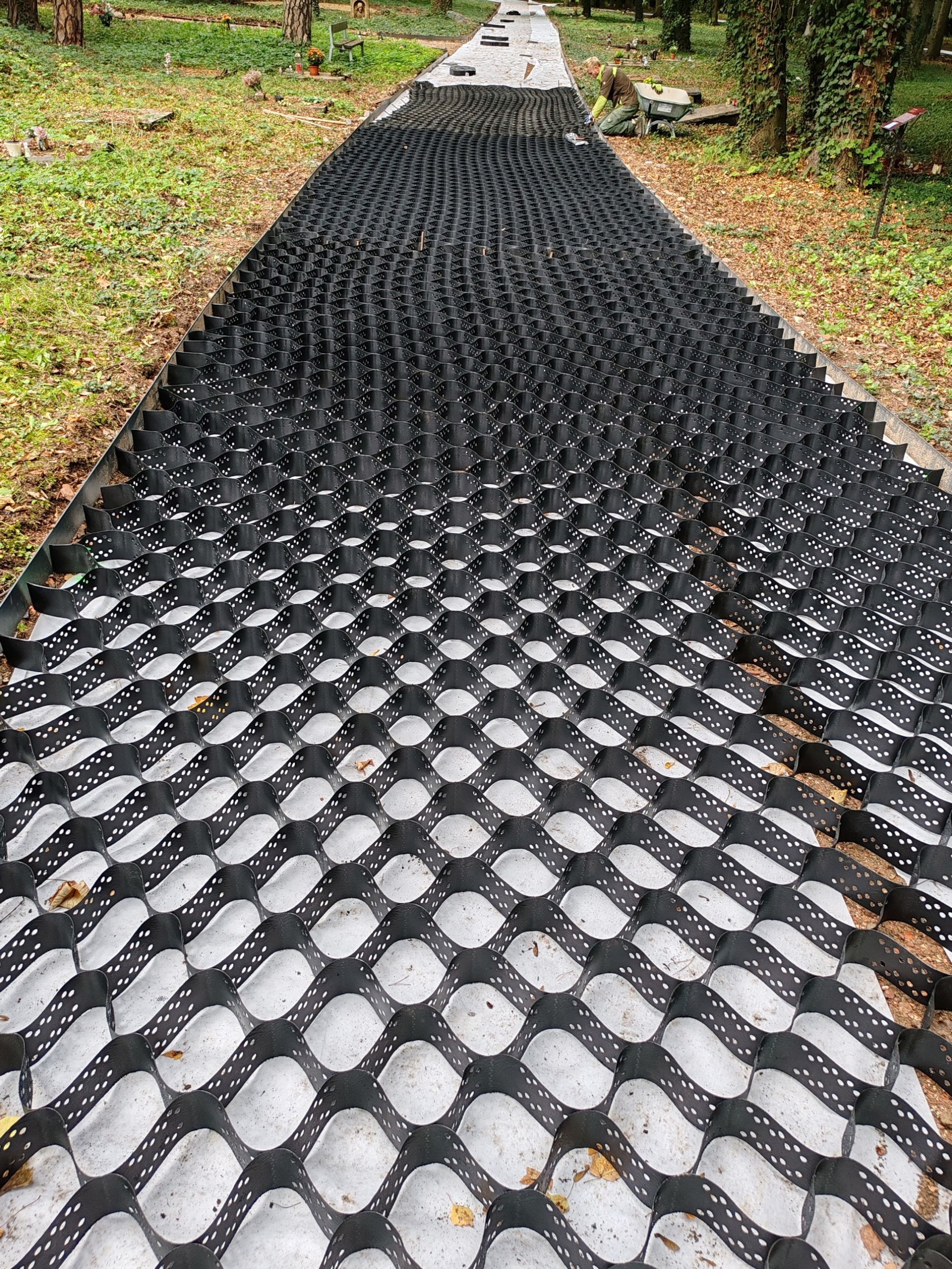V červnu 2025 nám byla přidělena dotace 450 000 Kč z Fondu životního prostředí na tvorbu mlatových cest v areálu lesního hřbitova na Ústředním hřbitově v Plzni. Dotace byla využita na kompletní obnovu 180m cest v tomto přírodním areálu. Cesty jsou ohraničené ocelovou pásovinou a při jejich tvorbě byla použita moderní technologie geobuněk, které umožnilo efektivní zpevnění plochy bez nutnosti hlubokých výkopů a zminimalizovalo tak poškození kořenových systémů stromů. Vzniklo tak celkem 540 m2 mlatových bezbariérových cest. Práce probíhaly od července do září 2025.
